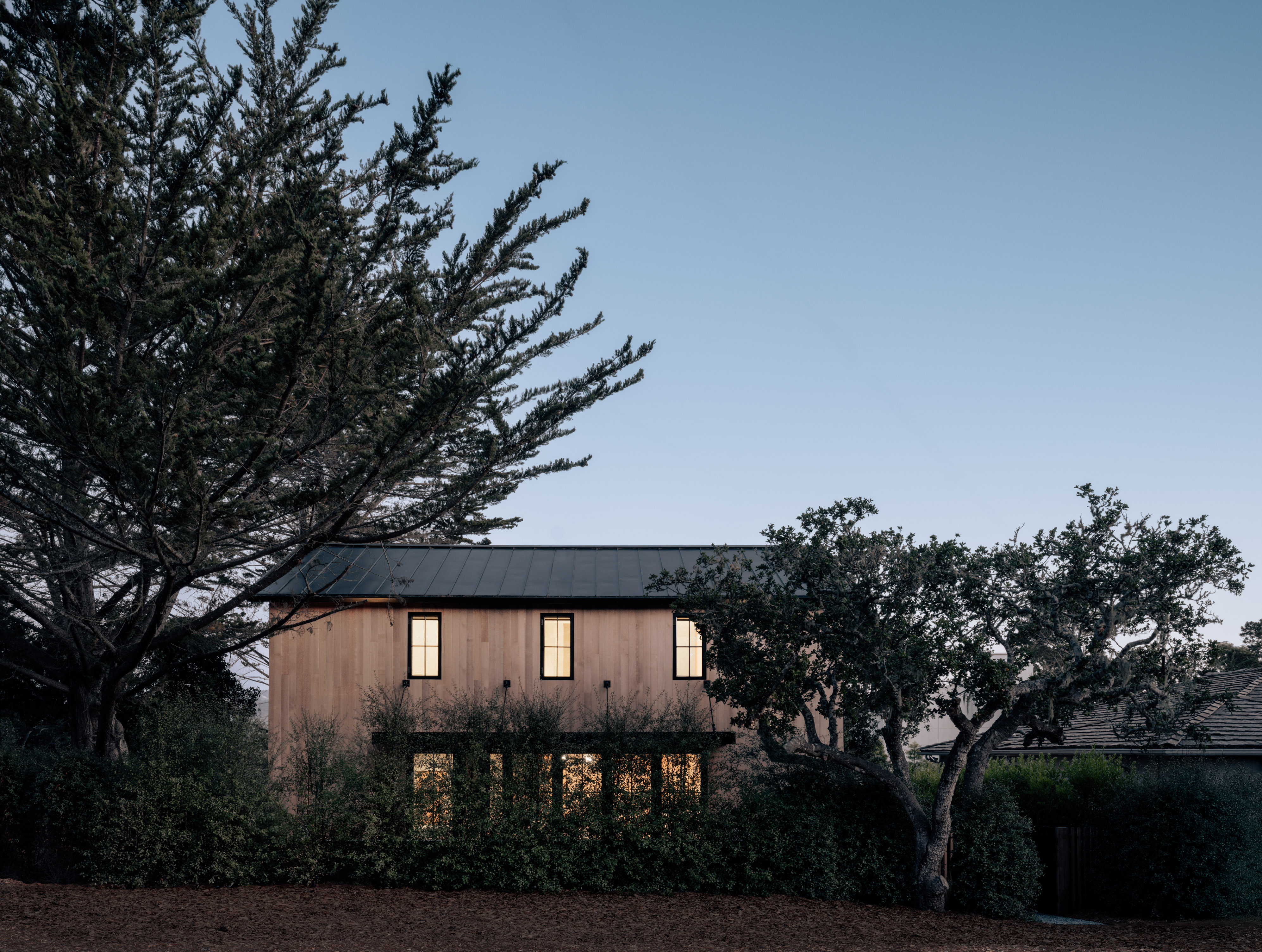 Envisioned as a weekend retreat for a Bay Area couple, this compact cedar clad modern cabin and landscape look inward for creating comfortable, well scaled spaces. Views to native oaks and cedars and a generous connection to an intimate garden court pays homage to the quaint and cozy character of Carmel homes and gardens. The project’s outward expression emphasizes a refined, elemental materials palette and cohesive forms to impart a sense of spaciousness and simplicity.