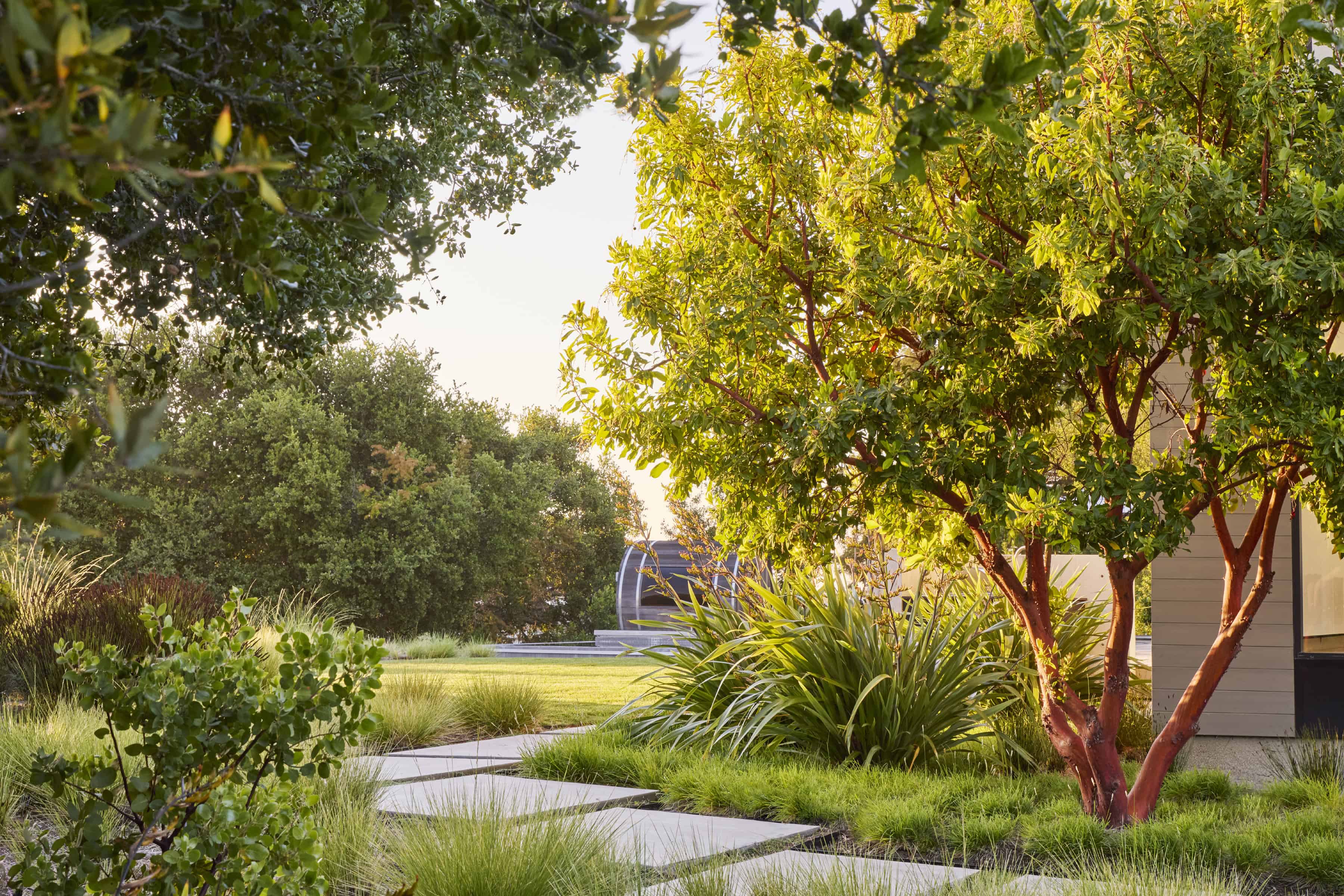 As a contrast to the built forms, expansive and textural native grasses soften and weave the peripheral landscape spaces together while referencing the oak savanna habitat indicative of regional coastal foothills.